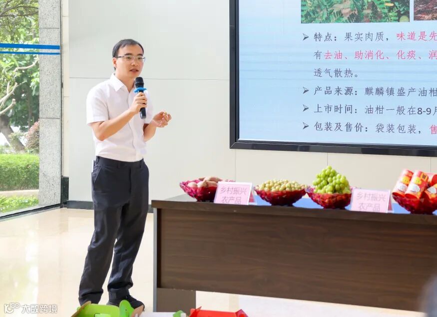 东莞交投集团驻麒麟镇帮镇扶村工作队队员陈卫全还现场展示了揭阳市普宁市地区的红薯、油柑和束砂糖等乡村振兴特色农产品,帮助大家近距离感受乡村的成果与魅力。