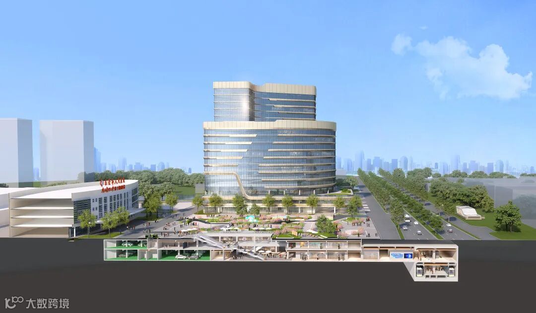 地面以上:通过无风雨连廊将交通设施和医疗设施连接;地面以下:市民从地铁口出来,通过地下室人行通道进行无风雨换乘,快速到达医院各大楼地下垂直电梯,直达门诊、急救中心、科教中心等,为就医群众创造更好出行体验。