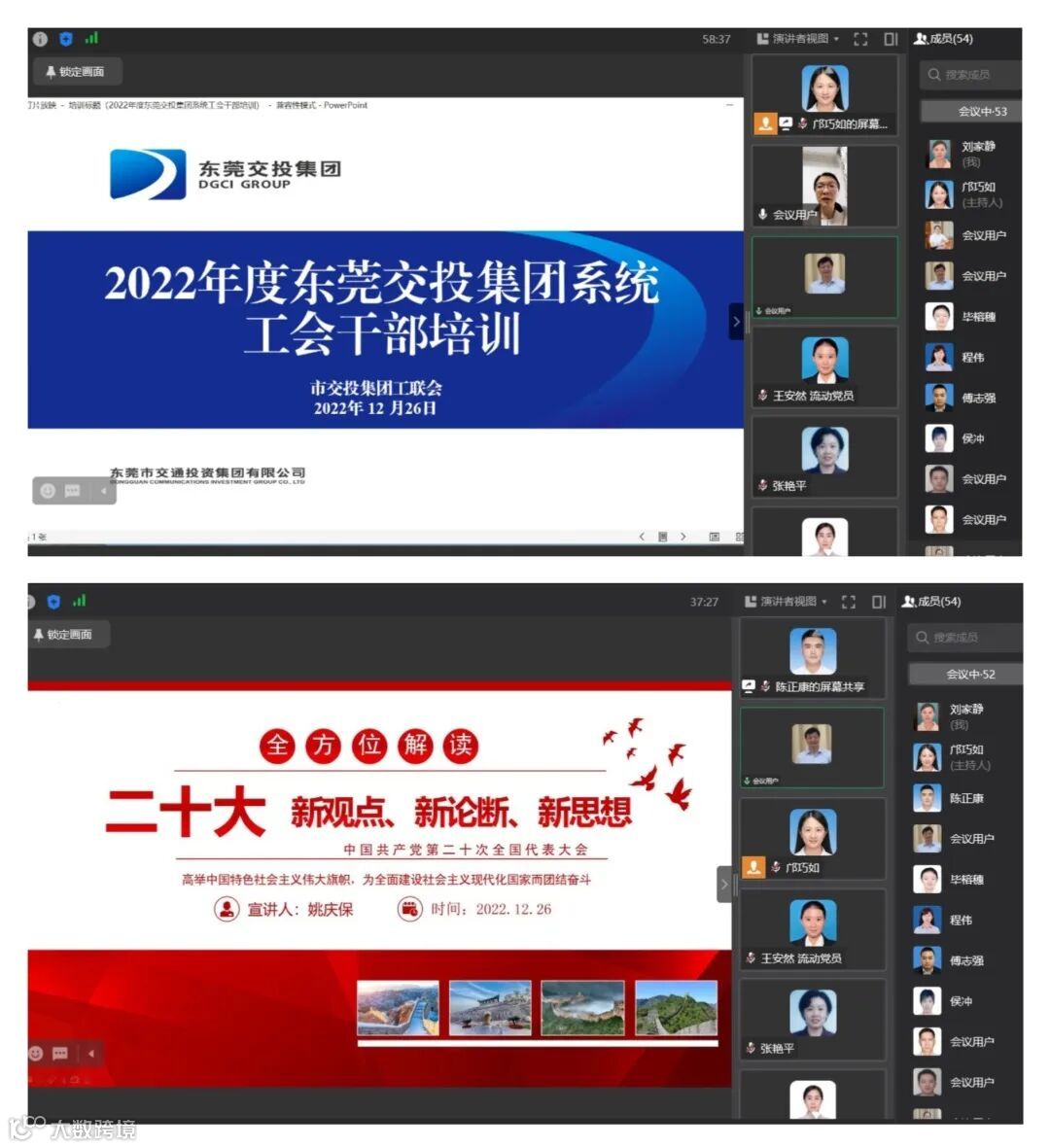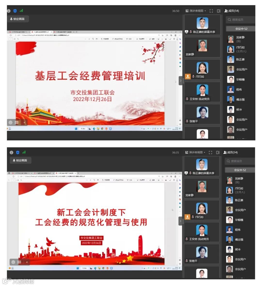 2022年12月26日,集团工联会以线上培训,线下自学方式举办2022年度东莞交投集团工会干部培训班,集团工联会主席袁翠娟作开班动员讲话,集团工联会以及各级工会干事共五十余人参加培训。