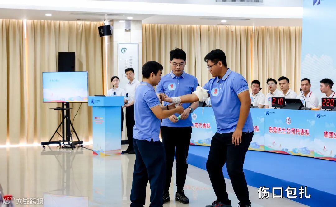 实操环节,参赛队员们在赛场上完成了海姆立克急救、心肺复苏、伤口包扎、防毒面具佩戴、担架操作等方面考验参赛队伍的技能。经过激烈角逐,最终东莞控股公司代表队荣获一等奖,集团公司代表队荣获二等奖,市轨道公司代表队荣获三等奖。