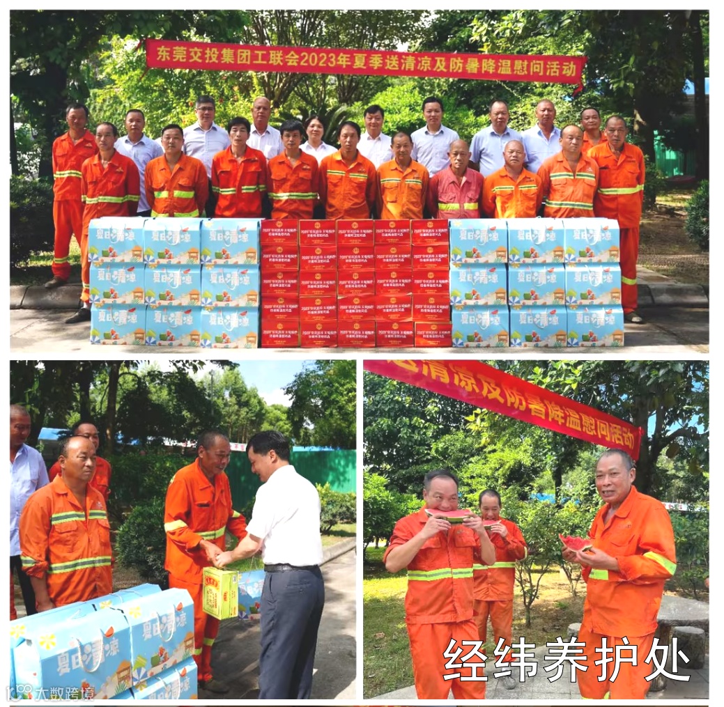 烈日炎炎、骄阳似火、爱心正浓。7月14日,东莞交投集团工联会主席袁翠娟带领慰问组深入基层一线开展夏季送清凉活动,正式拉开集团工联会2023年夏季送清凉及防暑降温慰问活动的序幕。