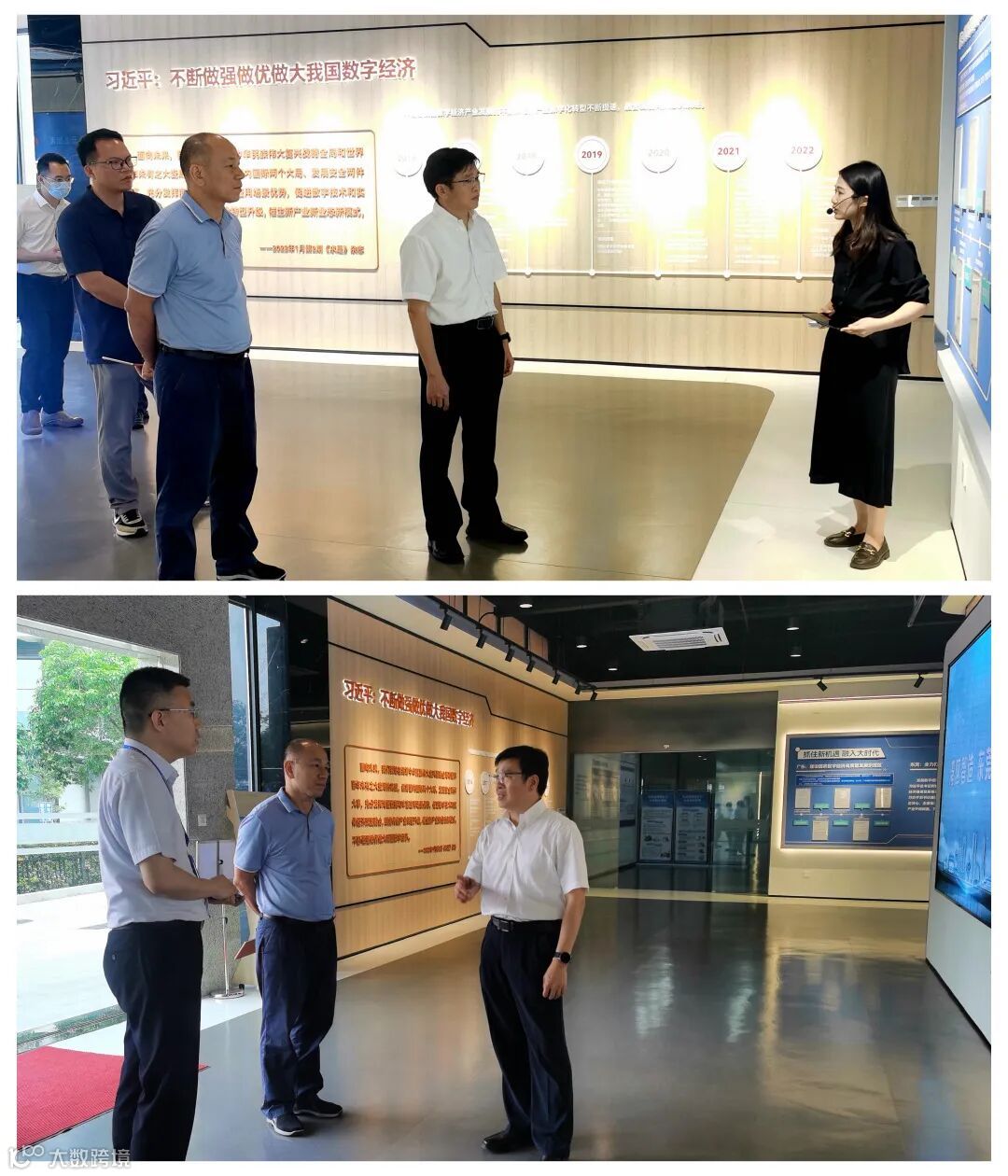 黄荣峰一行首先参观了赋能中心展厅,听取了项目数字化转型相关政策背景、独特运营模式、重点行业解决方案和实践案例、以及首年运营情况等内容。随后,双方围绕数字经济、数据中心、低碳储能、园区生态合作等主题开展交流座谈。