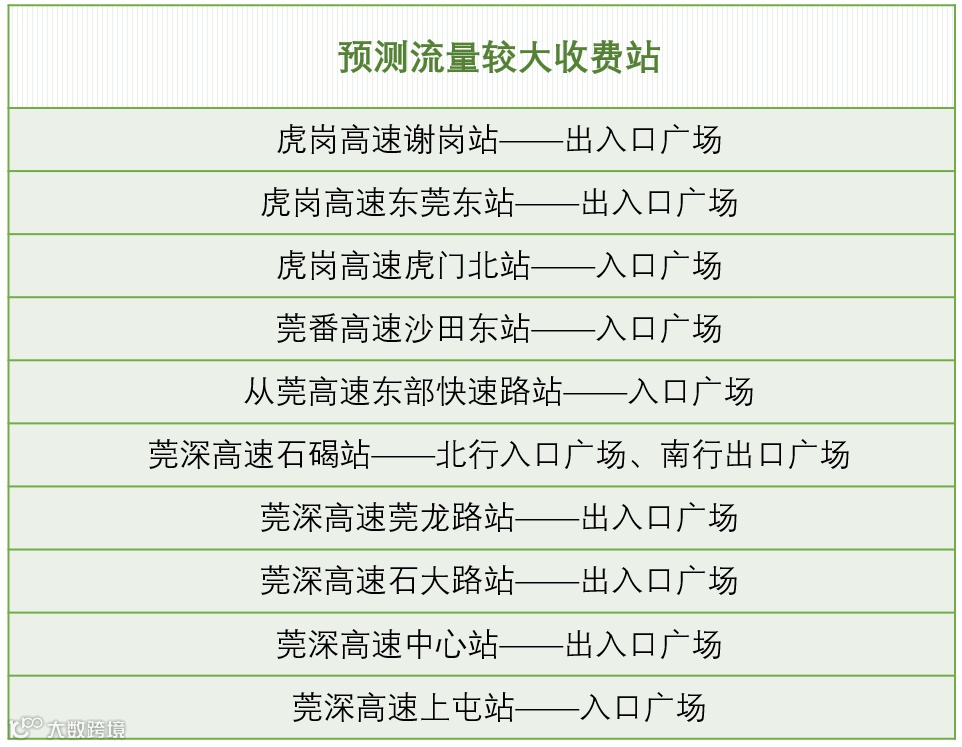 预测离莞车流高峰时段为9月30日的9时至21时,其中17时至20时尤为集中;返莞车流高峰集中在10月6-7日的10时至20时,其中每天16时至19时尤为集中。