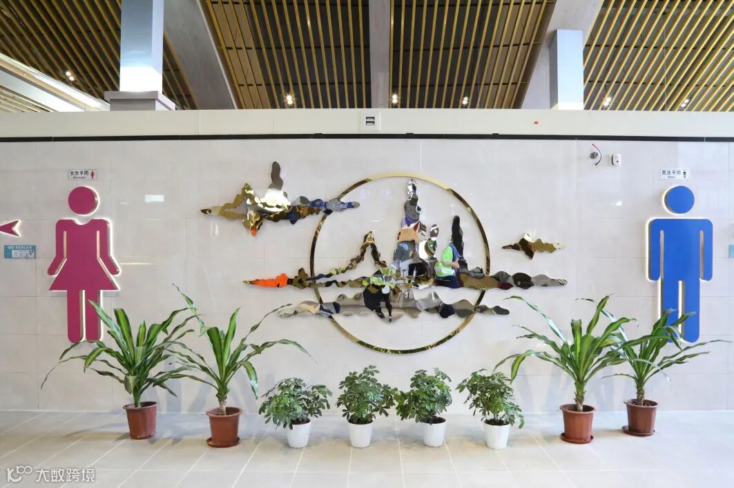 黄江服务区升级改造设计参考了岭南四大名园的特色风格,将凉亭、镬耳墙、彩色玻璃花窗等岭南园林主要建筑符号融入到黄江服务区不同场景,打造了精神堡垒、叠石小景、观景平台、休闲走廊等特色景观,同时对服务区洗手间、停车区标线、绿化景观做了升级,让司乘人员形成新的视角观感和服务体验。