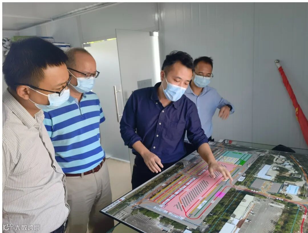 在深圳湾口岸现场,伦楚能认真听取了巴士公司关于现场作业流程、人员职责分工以及安全防疫工作等情况汇报。随后,伦楚能与现场工作人员就跨境货车摆渡接驳模式的运作进行深入讨论。