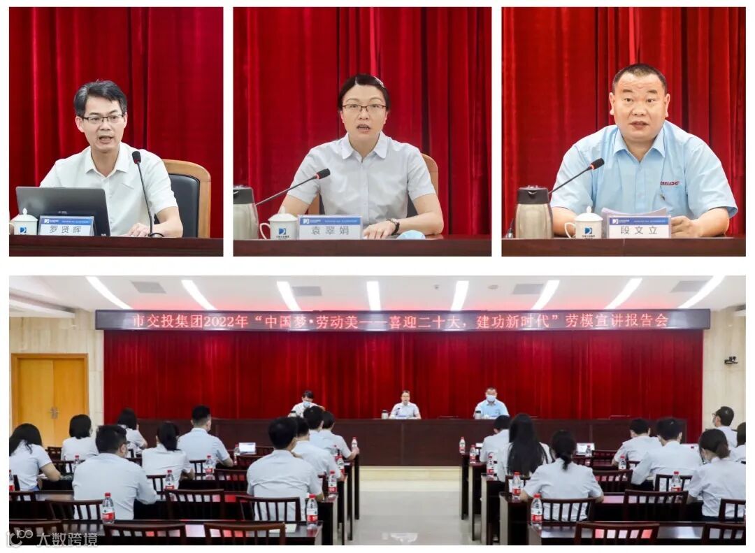 4月27日,在“五一”国际劳动节来临之际,东莞交投集团举办2022年“中国梦·劳动美——喜迎二十大、建功新时代”劳模宣讲报告会,邀请集团系统劳动模范段文立车长、罗贤辉高级工程师作宣讲。东莞交投集团工联会主席袁翠娟主持会议。宣讲会在集团公司9楼报告厅设主会场,并同步以视频形式直播至下属公司10个分会场。集团系统各工会委员会成员及员工代表约350人参加会议。