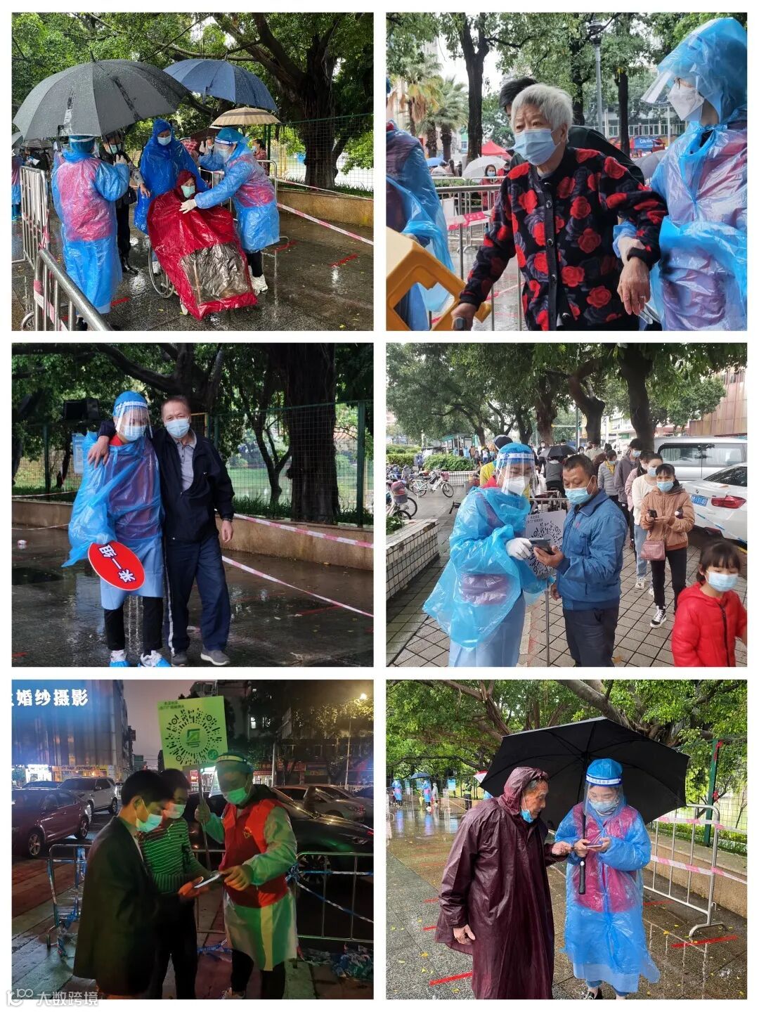在核酸检测现场,一场大雨不期而至,并伴随大风降温,给正在紧锣密鼓进行核酸检测的医护人员和志愿者们带来诸多不便。虽然风雨打湿了裤角,模糊了面罩,给现场工作增加很多难度,但丝毫没有动摇志愿者们战“疫”必胜的决心。