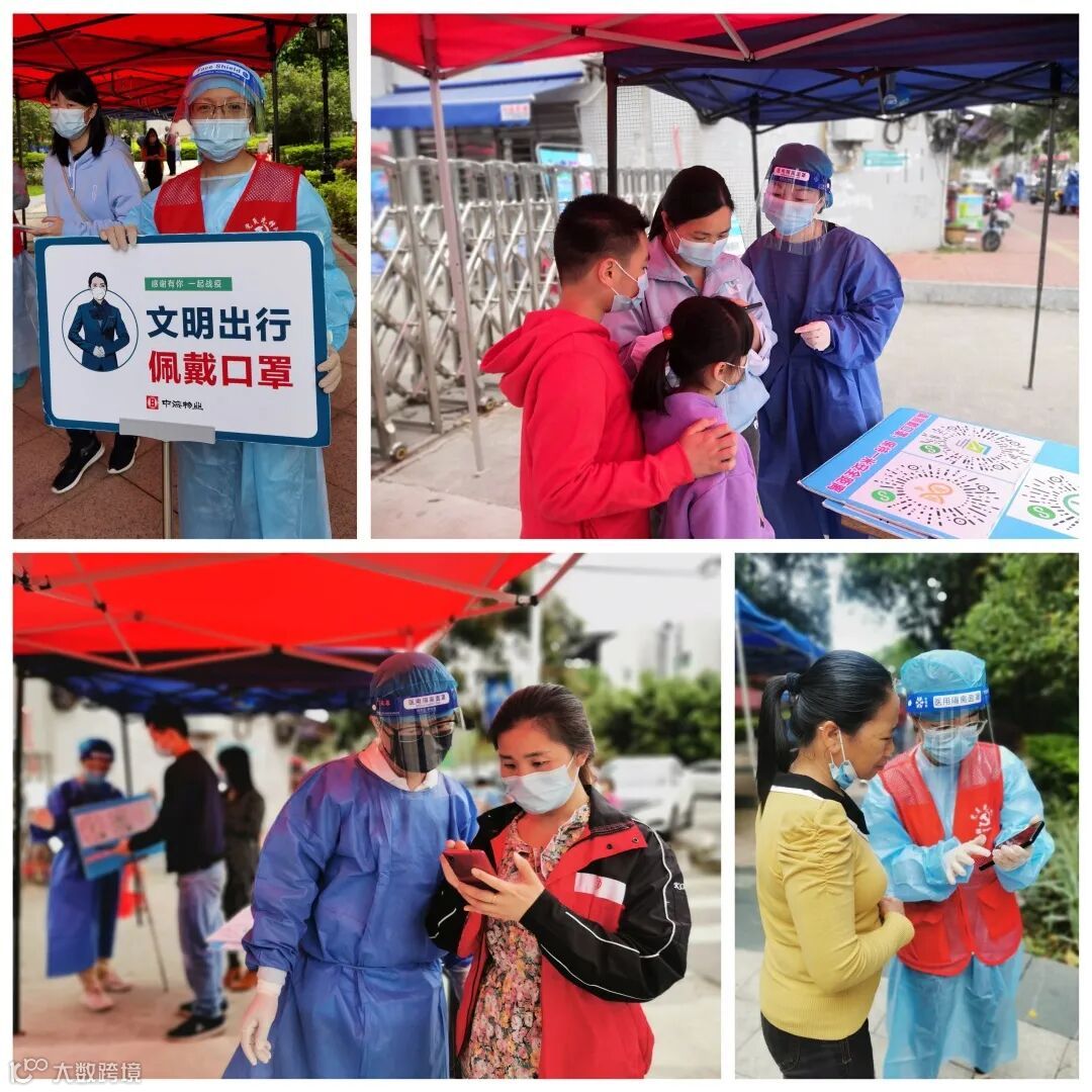 当天上午,由东莞交投集团工联会主席袁翠娟带领的4人志愿服务小分队在南城街道宏图社区率先开展支援活动,志愿者在防疫一线为社区居民提供核酸检测的便民服务,耐心维持队伍秩序、引导群众提前准备核酸码等,有条不紊地协助居民完成核酸检测。