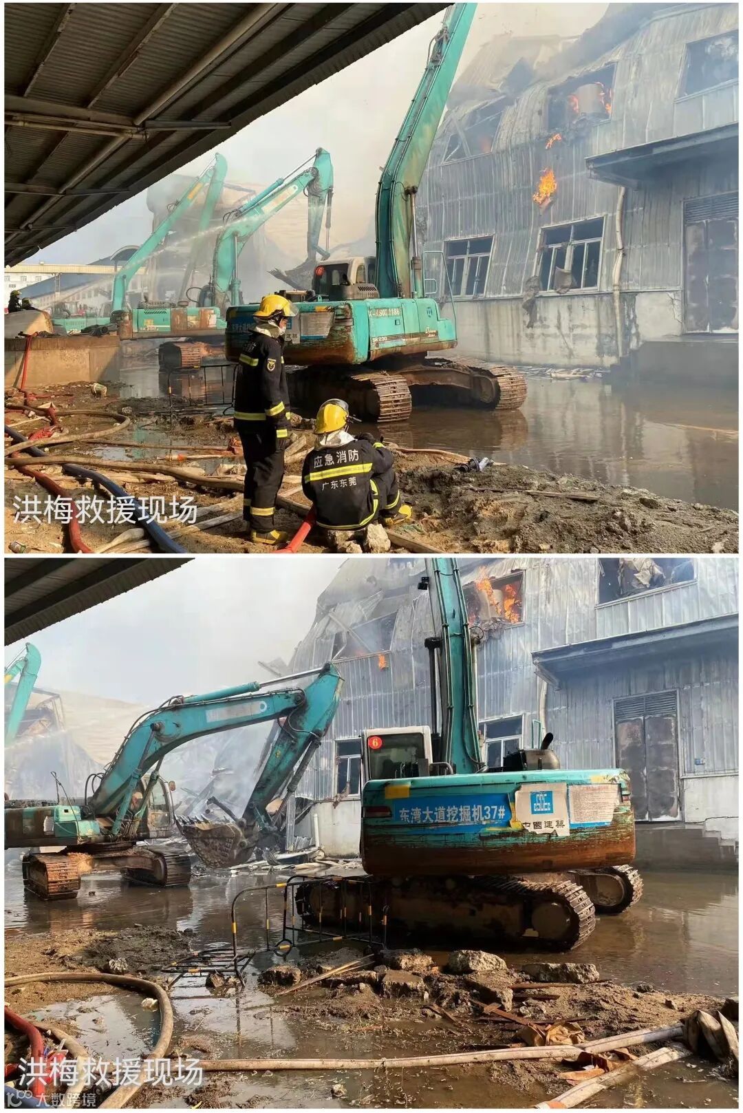 挖机助力灭火,轨道一号线公司参与洪梅镇、寮步镇火灾救援