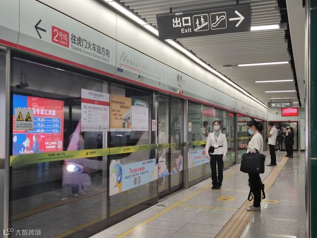 通过地铁车站告示、出入口、PIS端等渠道开展防疫政策宣传,号召乘客搭乘地铁时做好个人防护,严格落实戴口罩、亮码(场所码)、测体温“三个100%”防控要求,为广大市民开启全方位“云端”守护。