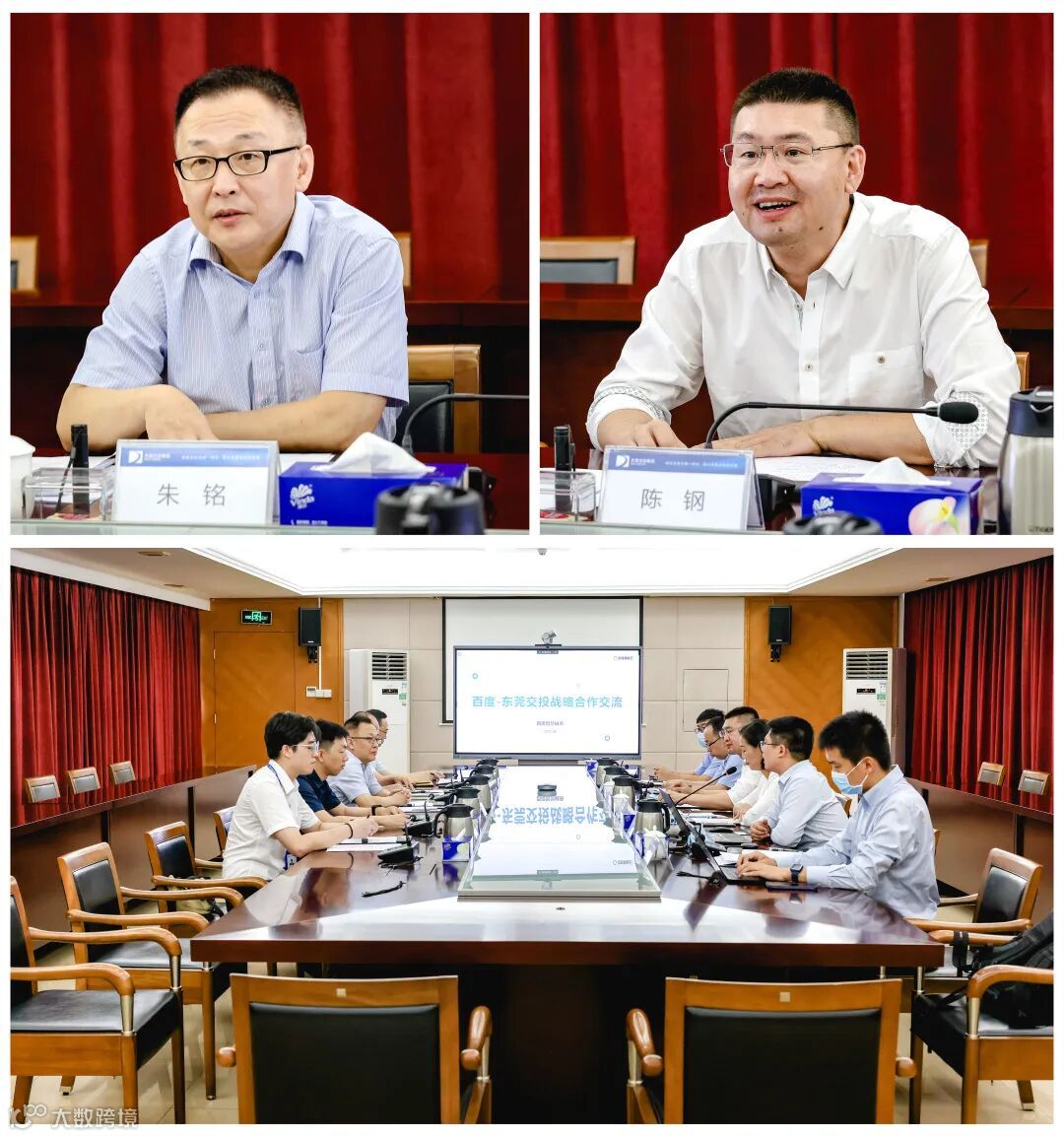 6月30日上午,百度集团智慧城市中国区副总经理陈钢带队到东莞交投集团开展合作交流,东莞交投集团党委副书记、总经理朱铭、党委委员叶卓棋及经营管理部、企业事业管理部、数据互联公司、静态公司相关人员参加座谈。