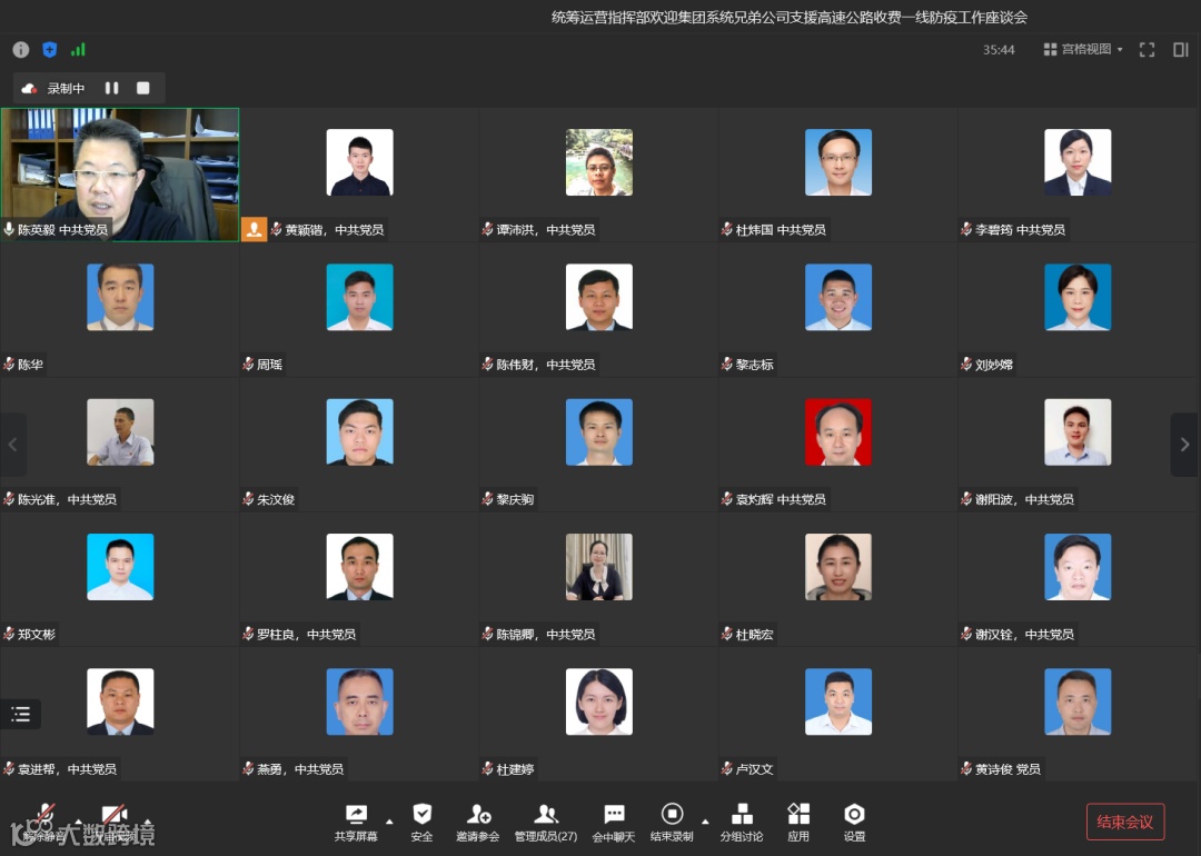 4月29日,东莞交投集团党委委员、高速公路统筹运营指挥部指挥长陈英毅组织召开座谈会,对支援人员的到来表示欢迎和感谢,并提出同心协力齐抗疫、个人防护要做足、人文关怀落实好等三点要求。