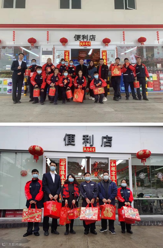 2月1日(年初一),交投石化公司领导分别到横沥、立新及田美油站进行春节慰问,并为油站留莞员工送上年货。