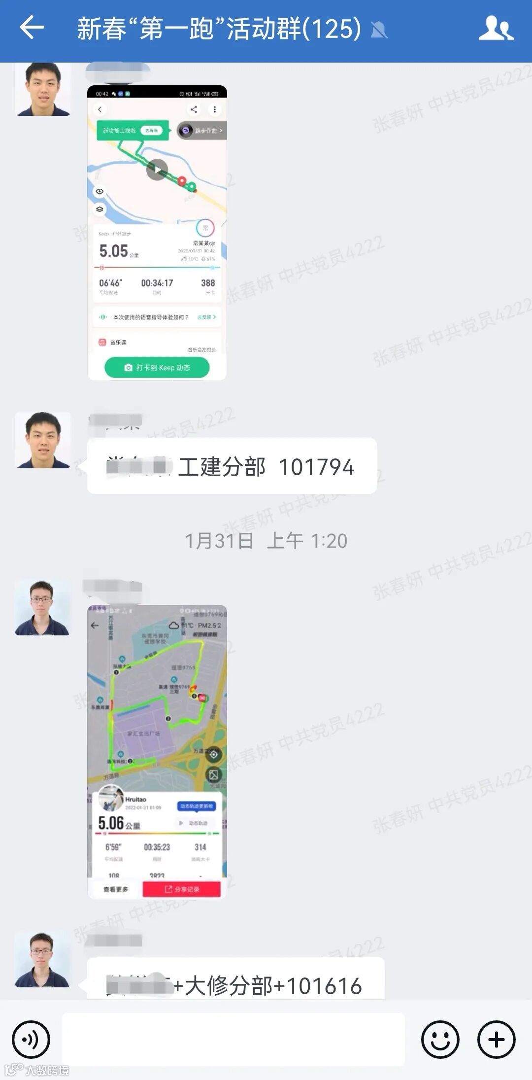 市轨道公司运营分公司组织开展线上新春“第一跑”活动。活动积极响应“不集合、不聚集”要求,参与者在1 月 31 日至 2 月 6 日(除夕至大年初六)期间,各自完成 5 公里户外跑步,并通过企业微信群打卡记录,交流心得。