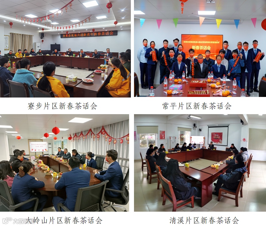 高速公路统筹运营指挥部组织常虎分公司、莞深分公司在2022年春节期间开展了“关怀一线、团结凝聚、激发活力”为主题的“迎新春”团建活动,本次活动分四个片区(寮步、清溪、大岭山、常平)同步开展,活动内容包括送新年祝福、共享团圆饭、新春茶话会、三人篮球赛、户外小型徒步拓展等团建活动。