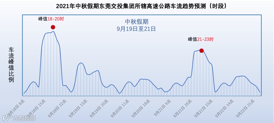 中秋节:预测离莞车流高峰时段为9月18日的9时至21时,其中18时至20时尤为集中;返莞车流高峰集中在9月21日的21时至23时。