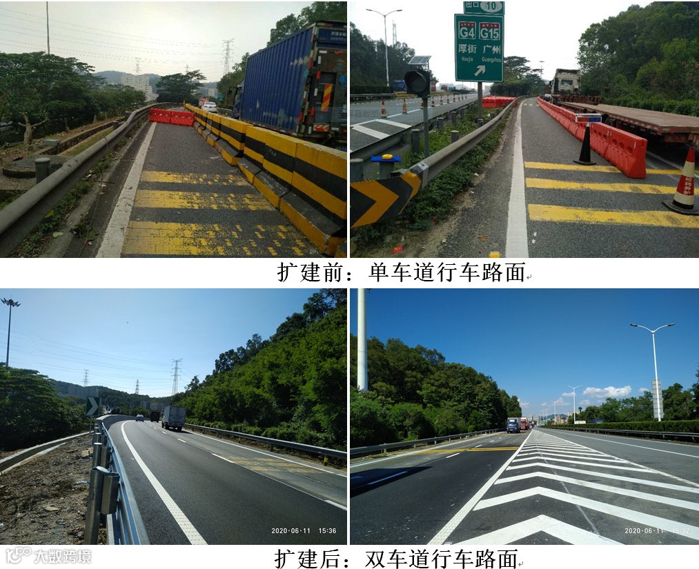 围绕高速公路交通拥堵和群众关注的瓶颈问题,采取有力措施加大治理。2020年1月始,推进实施集团辖下高速公路18处治堵优化工程;截至2021年9月,全线拥堵次数同比下降了43.1%,治堵效果良好。其中,虎门港高速新联互通D匝道交通疏导工程是在原有匝道左侧拓宽路面约2.5m,将原有单车道路面增建至双车道,极大地提升了匝道通行能力,改造后未发生拥堵情况。