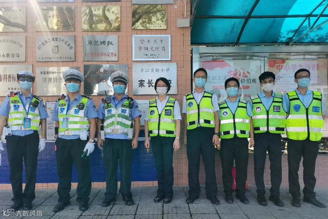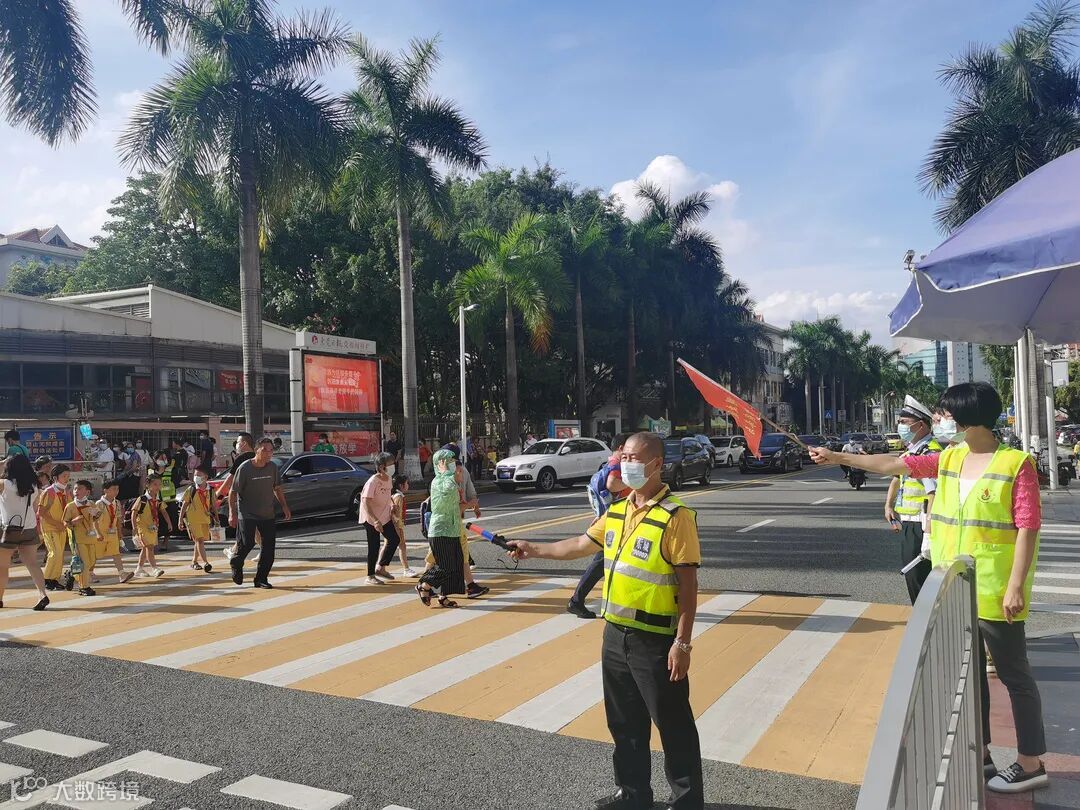 有条不紊地在校门前疏导交通
