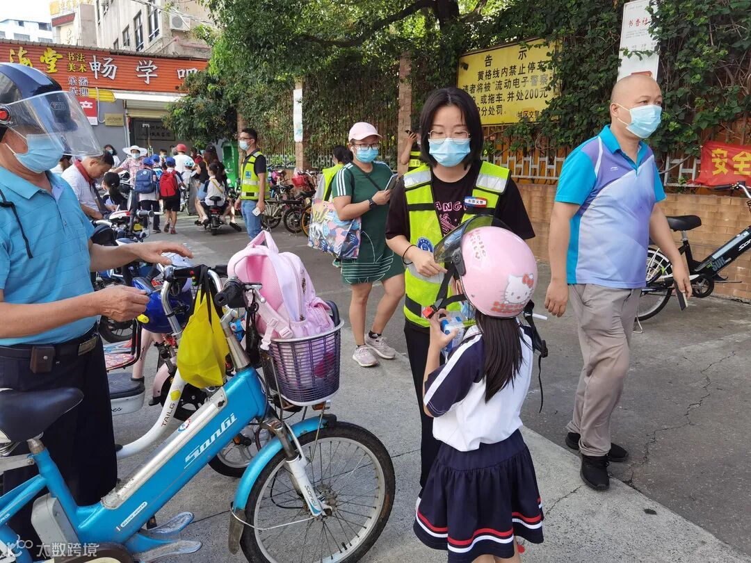 家长在护送孩子上下学期间,骑行电动车一定要严格遵守“一戴两不”,即戴头盔、不闯灯、不逆行。