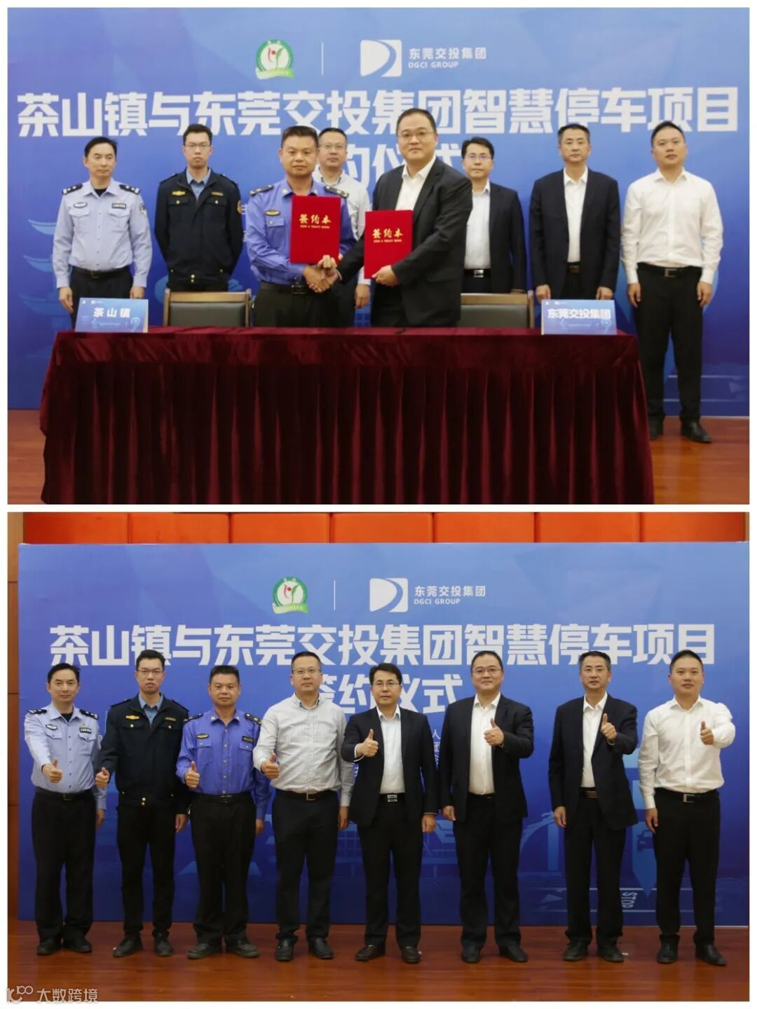 仪式上,茶山镇代表东莞市城市管理和综合执法局茶山分局局长、茶山镇公用事业服务中心主任余锐强与东莞交投集团代表东莞静态交通投资有限公司执行董事莫松坚签署合作协议。