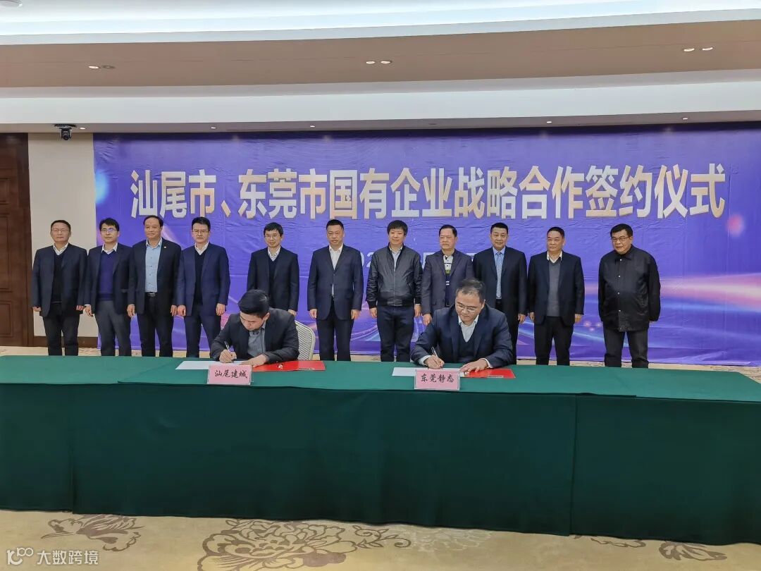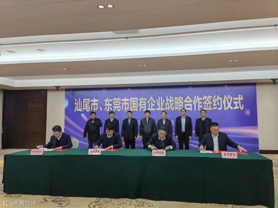 2021年1月19日下午,东莞交投集团等市属国有企业与汕尾投控公司在汕尾市友谊宾馆举行东莞、汕尾两市国有企业战略合作签约仪式。汕尾市副市长邓涛、副秘书长王晓东,东莞市国资委副主任游锦辉,集团党委副书记、总经理张庆文,集团党委委员、副总经理李斌峰等一行出席仪式,并签署战略合作协议。