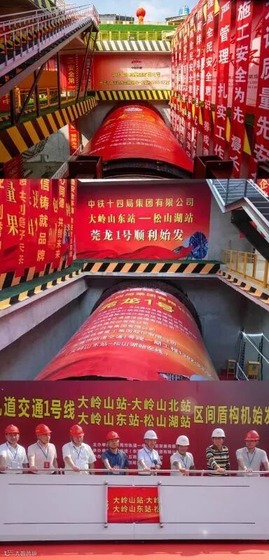 11月20日上午,轨道一号线公司在大岭山站举行大岭山站-大岭山北站区间“金龙23号”、大岭山东站-松山湖站区间“莞龙1号”两台盾构机始发仪式。
