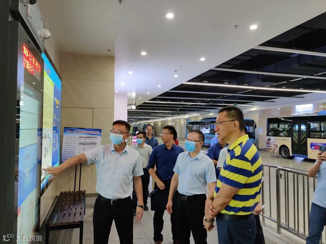 朱利民一行首先查看了国贸公交首末站的建设情况及公交线路进站运营情况,并体验了公交电子站牌的使用。