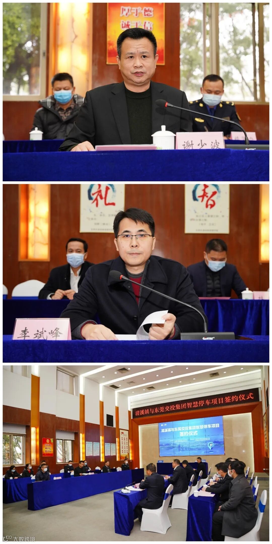 1月11日下午,清溪镇与东莞交投集团在清溪镇人民政府举行智慧停车项目签约仪式,清溪镇党委委员谢少波,东莞交投集团党委委员、副总经理李斌峰等有关负责人出席见证。清溪镇代表清溪交通分局局长钟锦堂与东莞交投集团代表东莞静态交通公司执行董事莫松坚签署合作协议,清溪镇成为我市第14个、东南临深片区首个将镇内停车资源纳入东莞交投集团统筹整合的镇街。这是今年路内停车统筹整合工作的“新年第一签”,更是吹响了纵深推进城市停车“一张网”建设的冲锋号角。