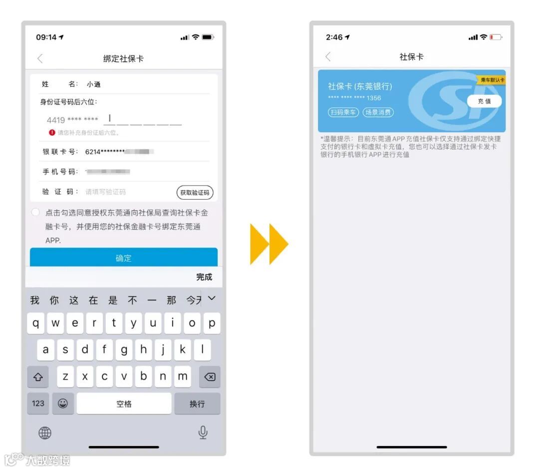 东莞通APP绑定第三代社保卡扫码乘车,记得要设置为默认卡;