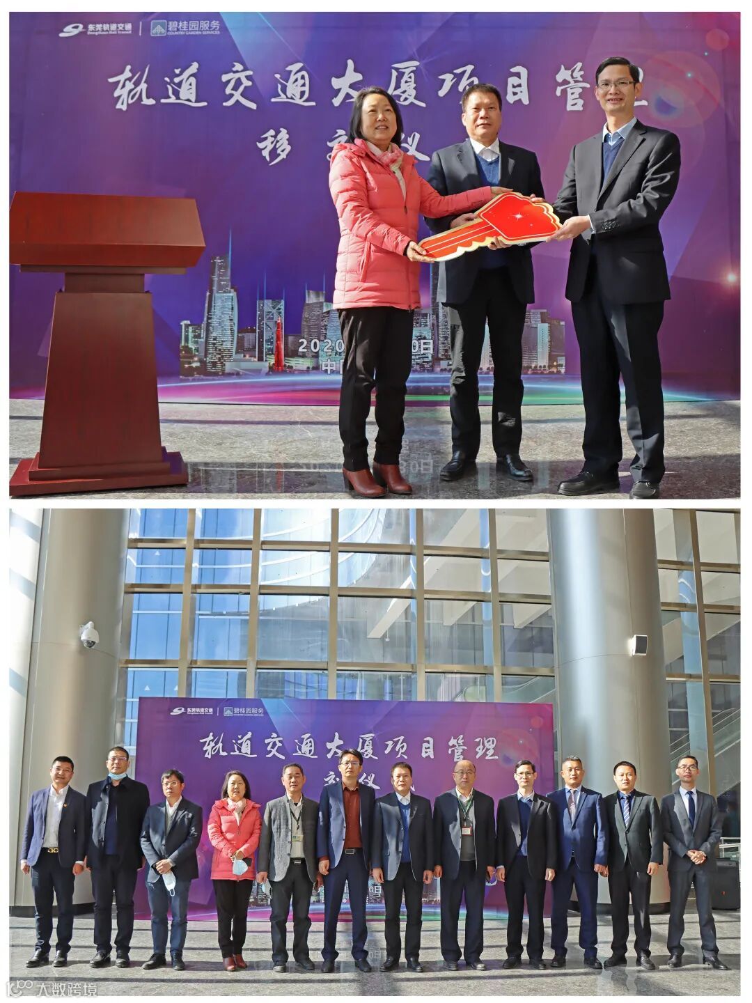 仪式上,中建五局代表参建单位介绍了项目概况及工程进展情况,碧桂园生活服务集团做了物业接管的表态发言,市轨道公司副总经理兼建设事业部总经理张艳平向副总经理兼开发事业部总经理周浩祥移交了象征轨道交通大厦管理权的“金钥匙”。