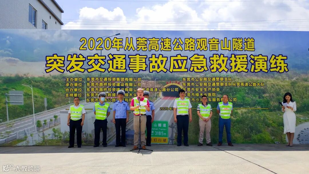 为深化落实省市道路运输安全专项整治三年行动,提升高速公路隧道交通事故应急处置水平,7月24日,由东莞交投集团和市交警支队主办,市路桥公司和市交警支队从莞高速公路大队承办,常虎分公司和东莞市安全生产协会协办的高速公路隧道突发交通事故应急救援演练,在从莞高速公路观音山隧道顺利举行。