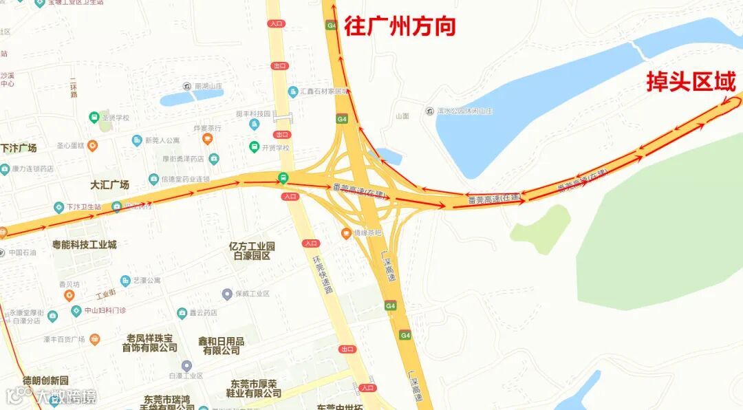 莞番高速掉头路线指引