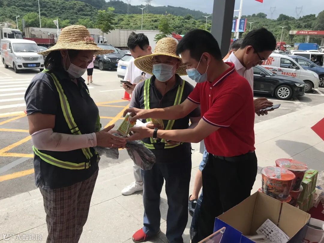 志愿者们向过往司乘赠送小国旗、口罩、小扇子、ETC办理宣传资料及莞深高速通车20周年纪念小礼品,同时提供凉茶、方便面、面包、应急药品、简易维修工具、充电线等物资,并根据司乘人员实际需要介绍实时路况、充电桩使用事项等。