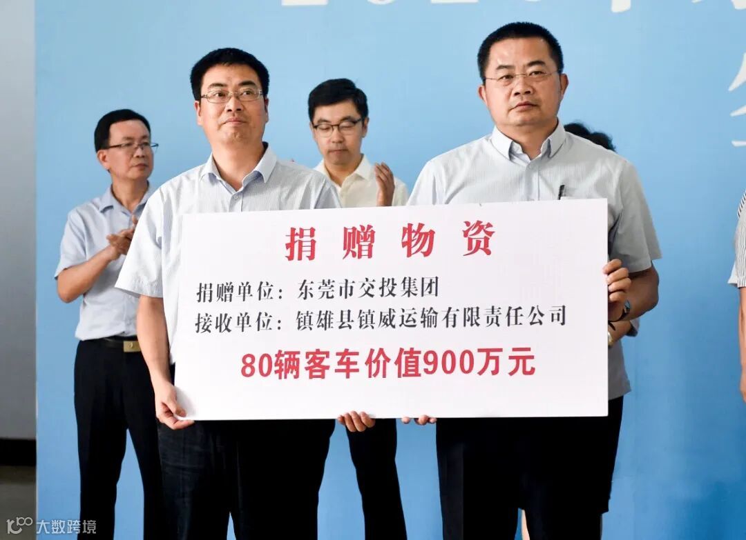 2020年东莞•昭通扶贫协作项目签约暨捐赠仪式在镇雄县举行,罗沛强代表东莞交投集团向镇雄县捐赠80辆客车,价值约900万元。