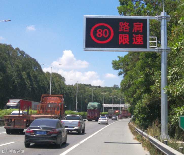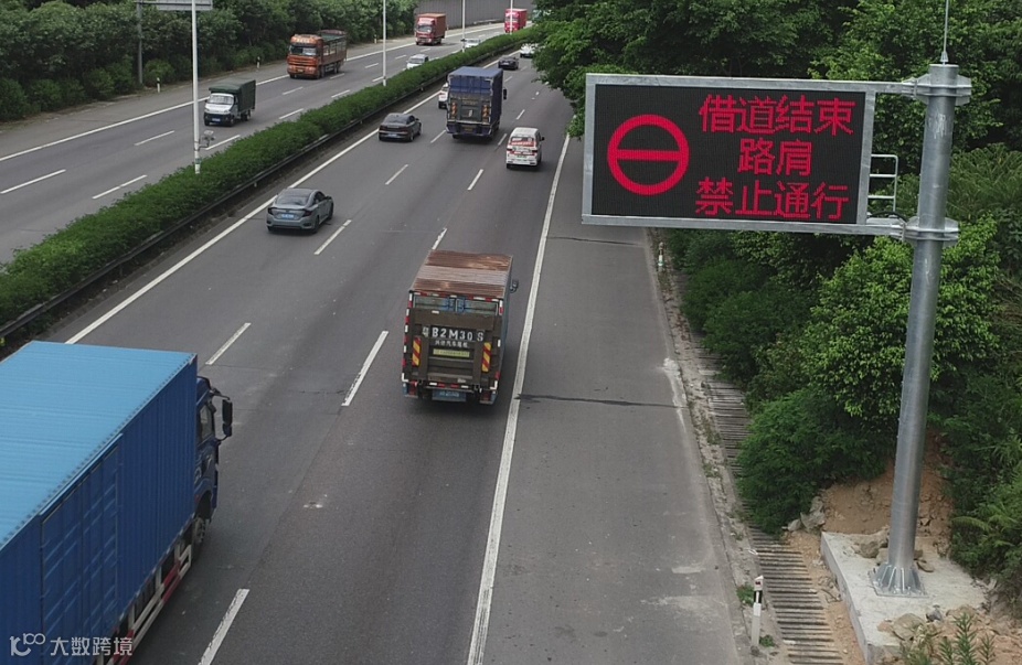 可借用路肩路段的起点、中间位置和终点位置均设有可变情报板,在交通拥堵时,通行该路段的小客车可以按照情报板指引,借用路肩通行。
