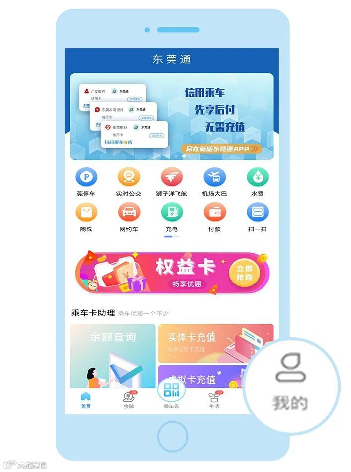 手机扫码👆或应用市场搜索并安装“东莞通”APP