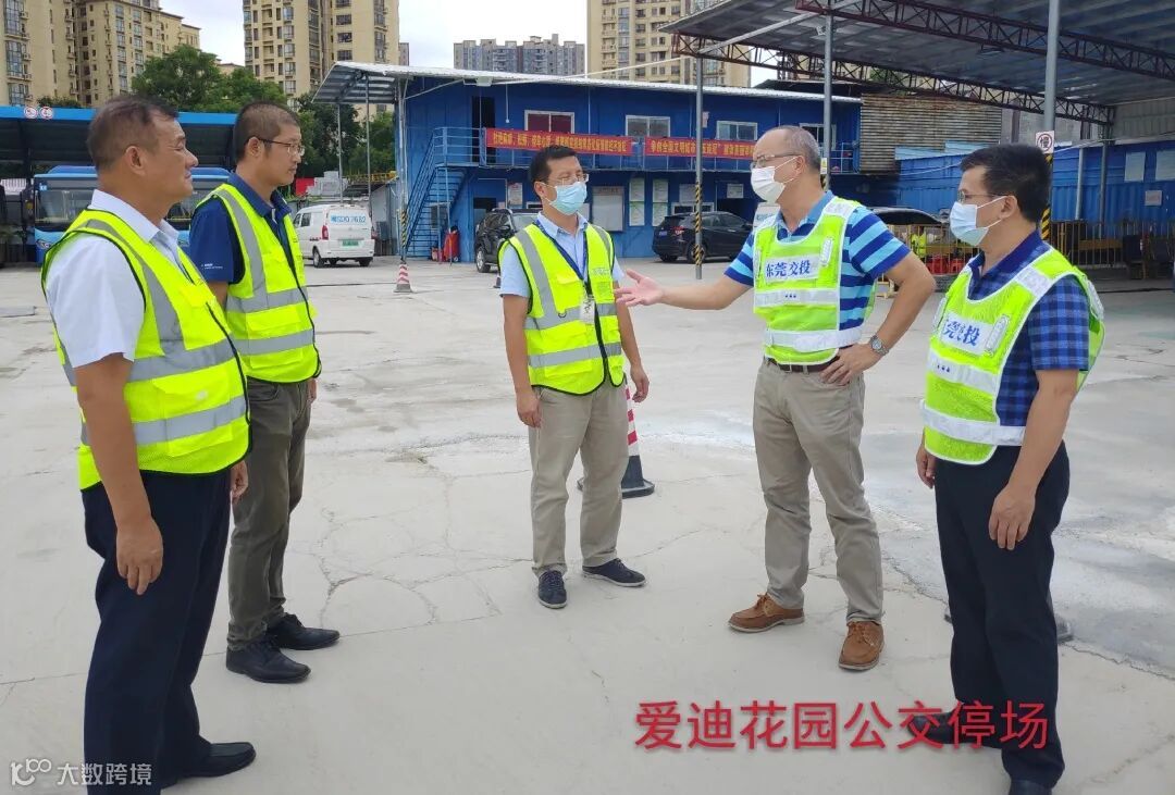 在爱迪花园公交停场,袁国超检查了停场现场管理情况和防汛防台措施落实情况,要求东莞巴士公司要加大汛期台风防御隐患排查,重点排查低洼站场、路段、线路黑点等,消除隐患,做好防汛防涝措施,特别做好台风期间沿海地区公交线路等的防海水倒灌措施。