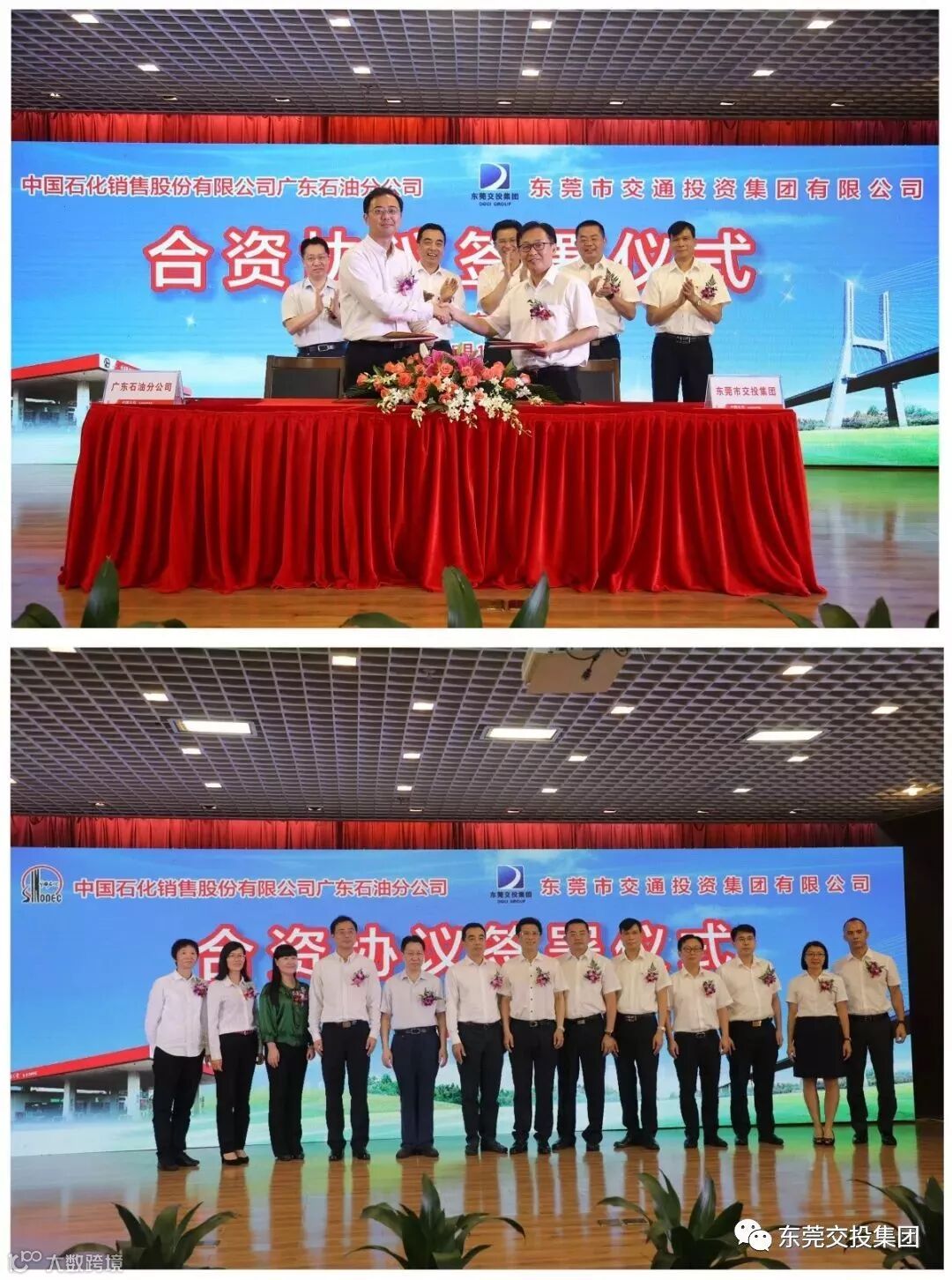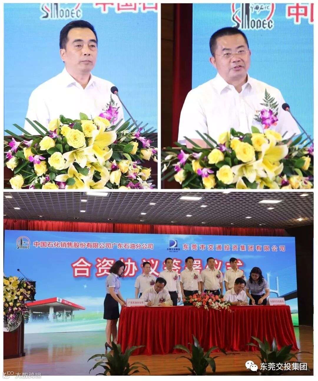中国石化广东石油分公司总经理陈成敏、东莞市国资委主任任洪杰、东莞交投集团董事长罗沛强等领导和双方企业代表共同见证合资协议的签署。