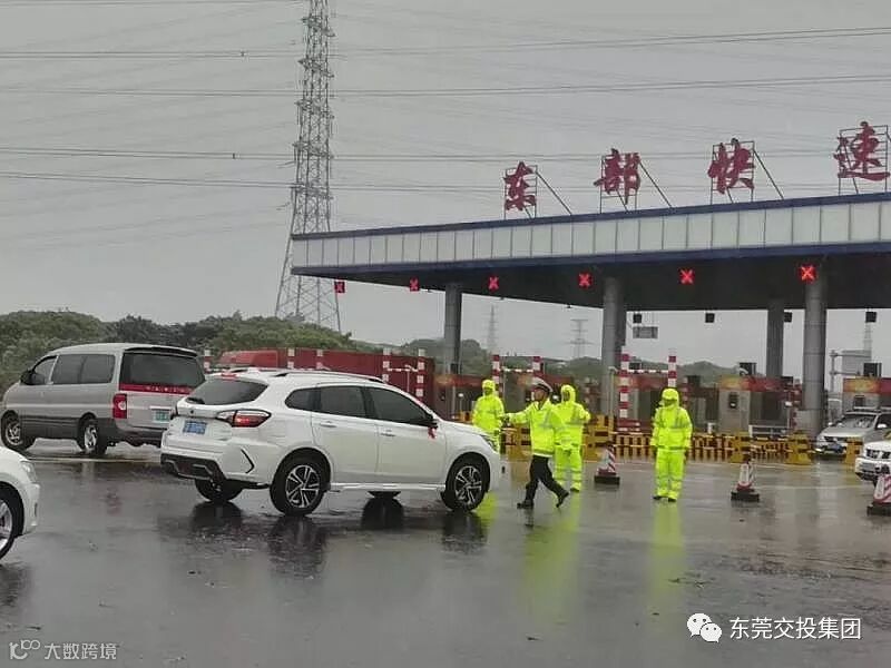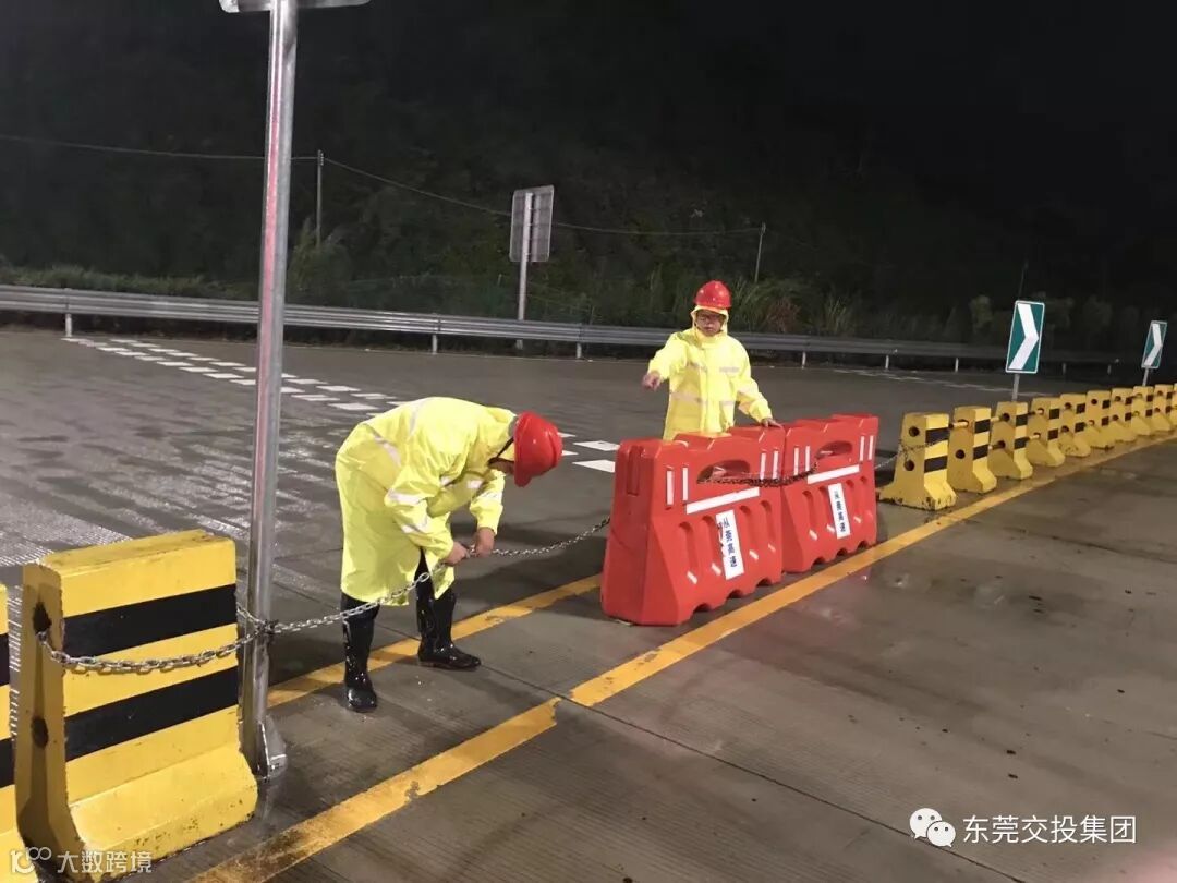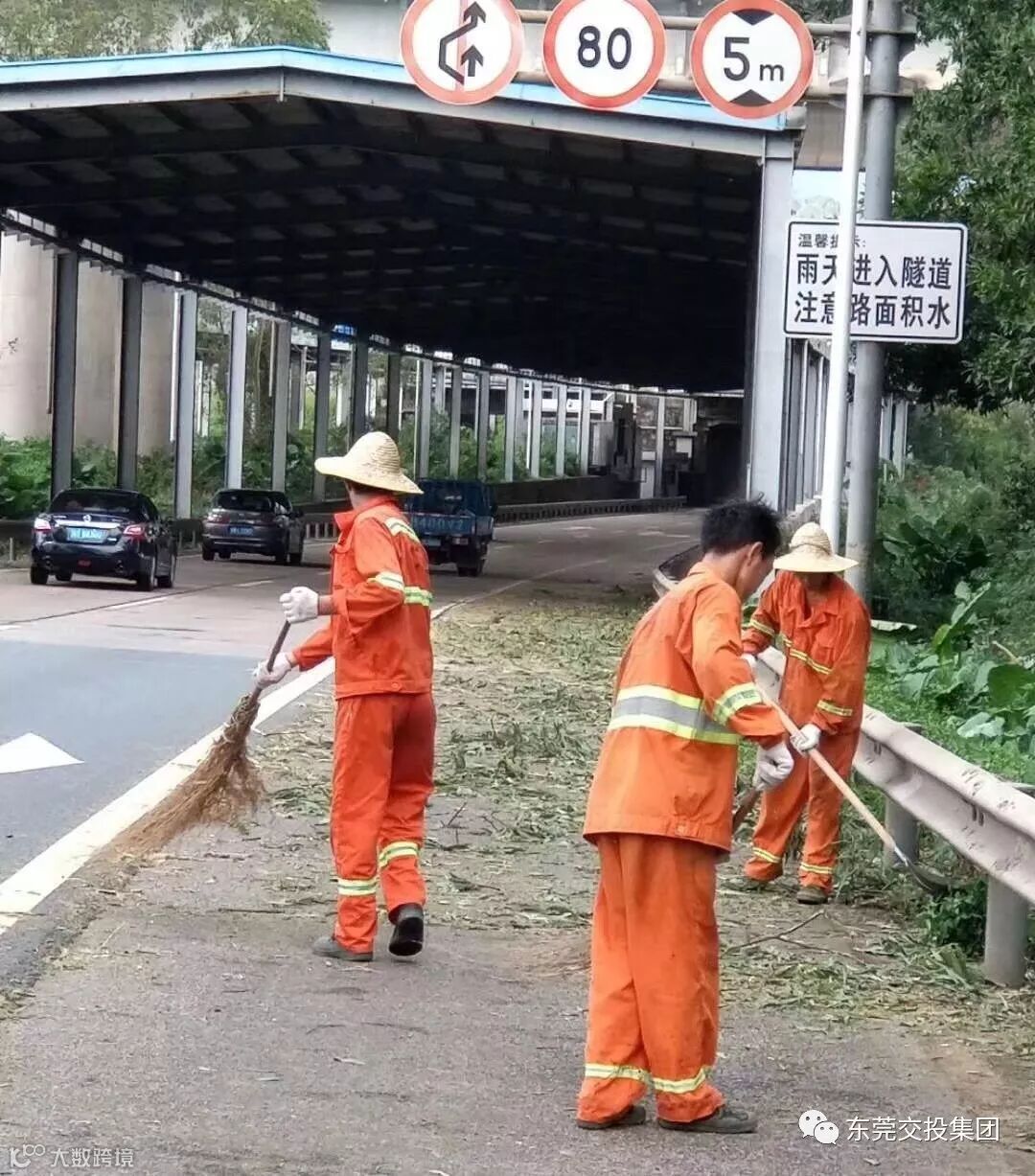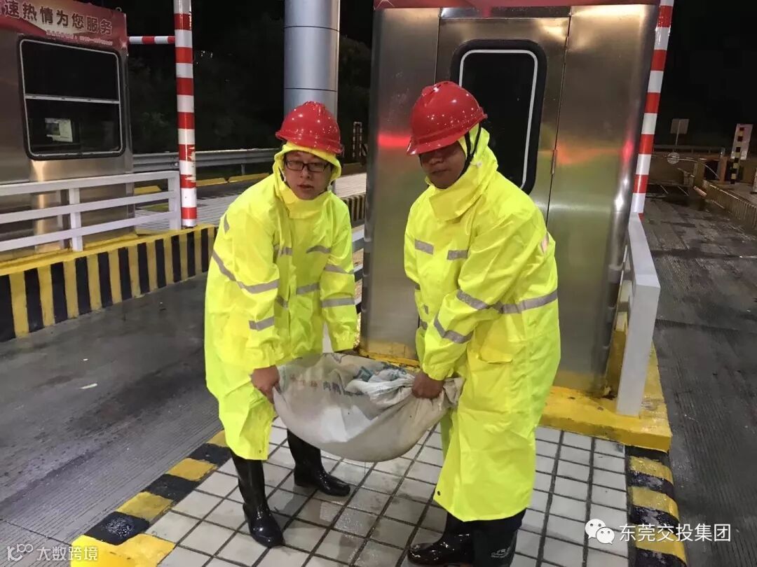 莞深高速、虎岗高速、从莞高速全体工作人员坚守岗位,一部分人员做好台风封路前的收费工作,另一部分人员开展台风前的检查,消除安全隐患,清理易被吹走的物资。