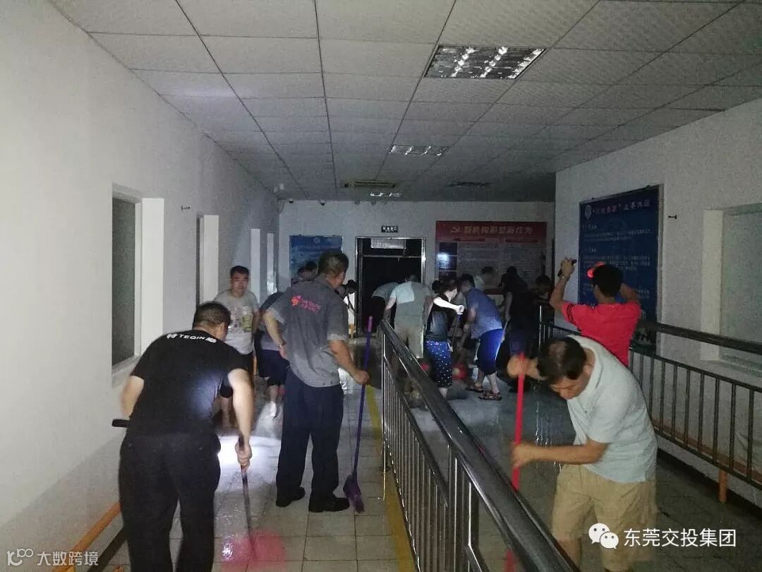 9月16日,随着“山竹”逼近,东莞受到10级大风影响,风大雨大,虎门甚至出现了海水倒灌的情况,临近海边的虎门港澳客运公司被海水浸漫。为尽快恢复正常运作,避免影响航班正常运营,虎门港澳公司全体员工一同开展排水工作。