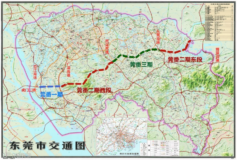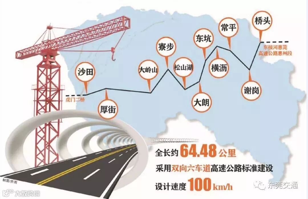 3、莞番高速三期为从莞高速至莞深高速段,东起于从莞高速,西接莞深高速,途经横沥镇、常平镇、大朗镇、东坑镇、松山湖和寮步镇。