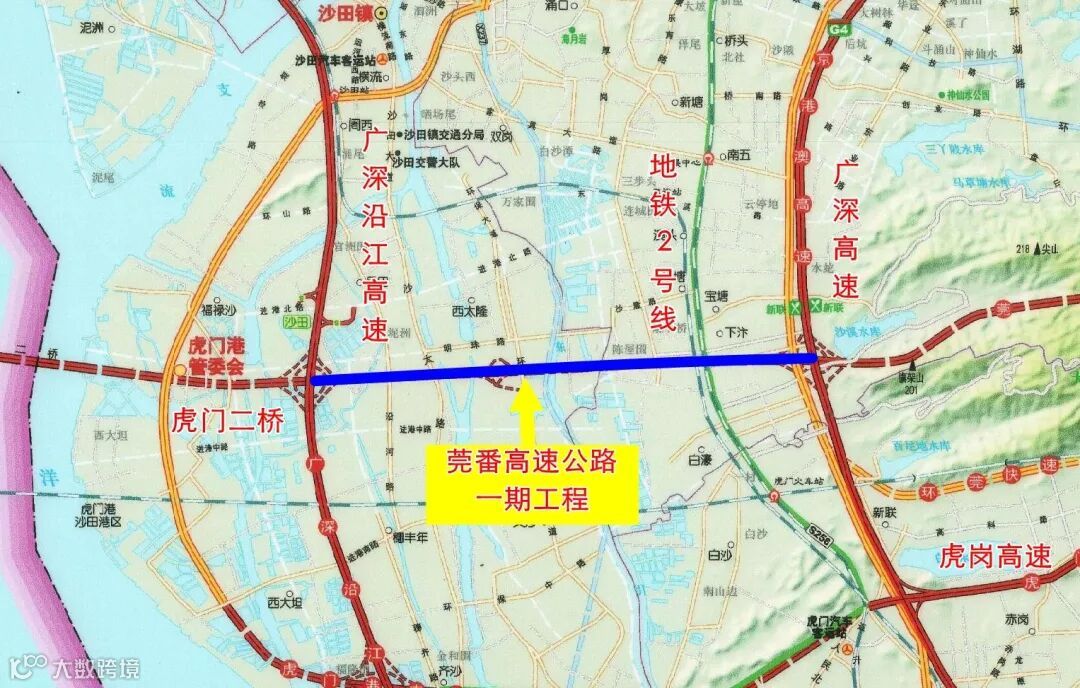 1、莞番高速一期为广深高速至虎门二桥段,东起于广深高速,西接南沙大桥,途经厚街镇和沙田镇,线路里程长约8.2公里。