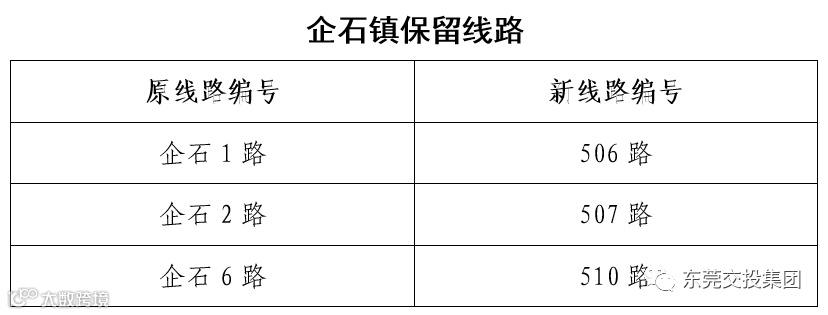 东莞交控集团8月10日起,东莞市松山湖公共交通有限公司将陆续承接企石镇、寮步镇及茶山镇的公交线路经营权,届时相关镇街的公交线路将重新编号,部分路线将优化调整。