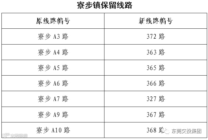 另外,从8月16日起,部分跨镇公交线路将启用新的线路编号。