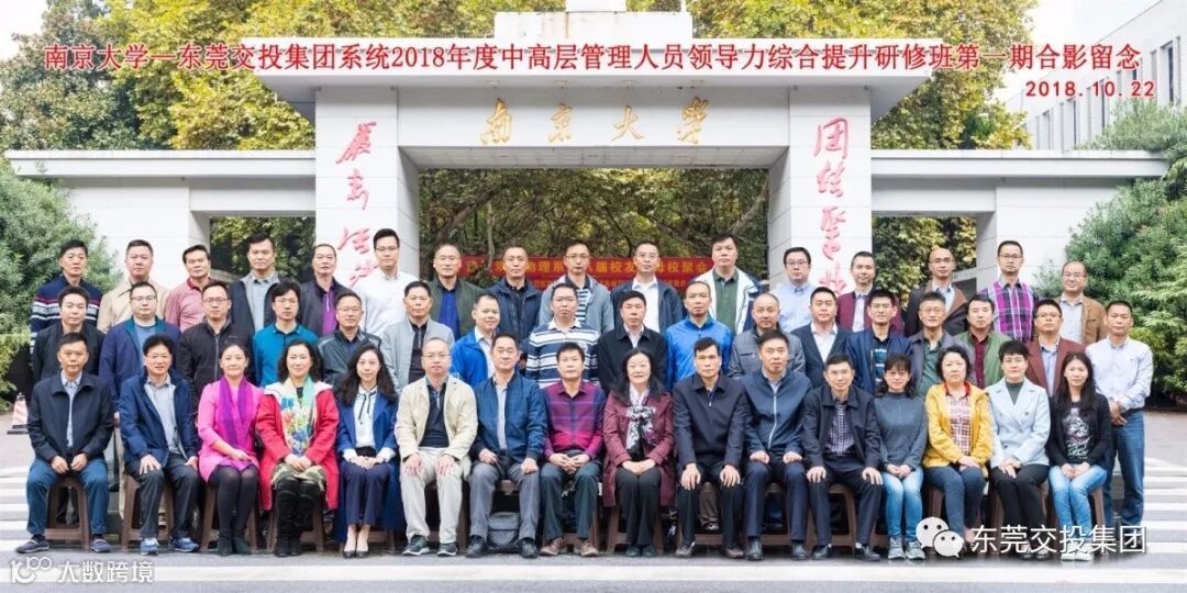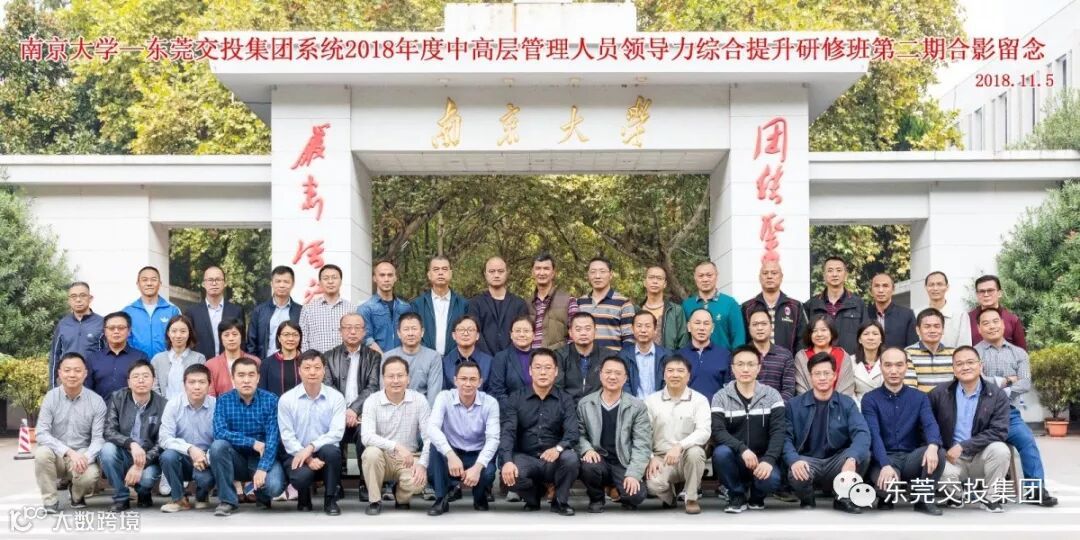 10月22日至26日,11月5日至9日,东莞交投集团2018年度中高层管理人员领导力提升研修班分两期在南京大学商学院顺利开班。东莞交投集团党委书记、董事长罗沛强参加第二期培训班并做重要讲话。罗沛强董事长强调,本次培训班是集团实施重组整合以来,第一次大规模组织系统内中高层管理人员进行培训,目的是提升综合领导能力,以适应集团多元化经营和集团化发展的需要。希望参训学员珍惜机会,认真学习,勤于思考,学以致用,遵守纪律,注意安全,加强交流沟通,努力提升素质能力。