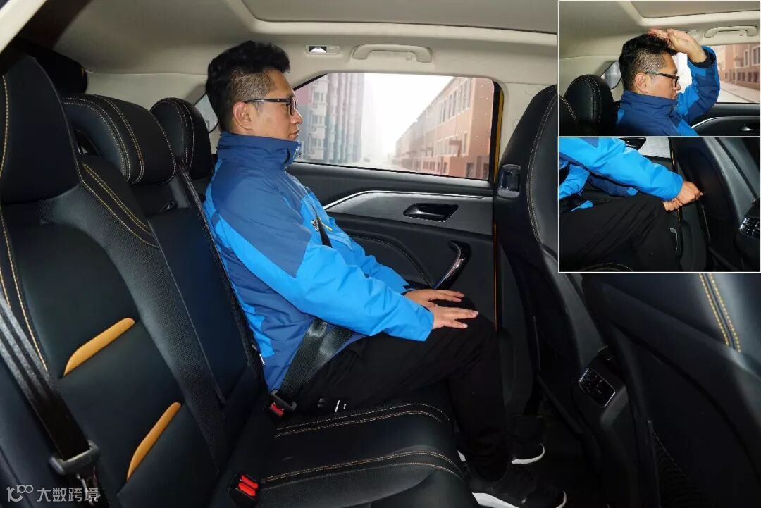 在保持前排座椅不懂的情况下,体验者后排的腿部空间两拳还有富余,而头部空间有将近四指的距离。车内乘坐空间非常充裕,完全可以保证乘客有一个舒适的坐姿。