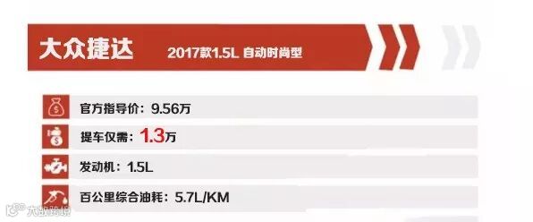 购买理由:从统计数据显示,捷达2017年全年捷达销量达到317637辆,投诉人数94人,投诉率占比万分之2,由此可见,捷达的品质感在消费者心中具有很高的认可度。捷达的这台1.5L发动机还是属于EA211系列,和之前的1.6L发动机在结构方面没有本质变化,但是通过内部优化,在燃油经济性上会有更好的表现。至于参数,最大功率保持不变还是110马力,但最大扭矩少了10牛·米,传动系统还是6挡自动变速箱。提车仅需:1.3万,月供:2764元X36期。