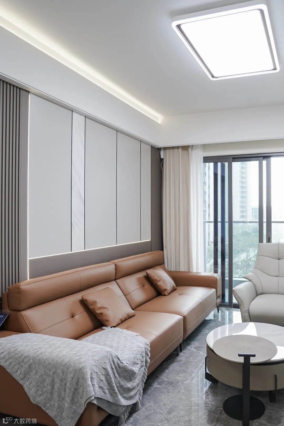 客厅浅米灰+深灰打底,视觉上直接显大一圈!