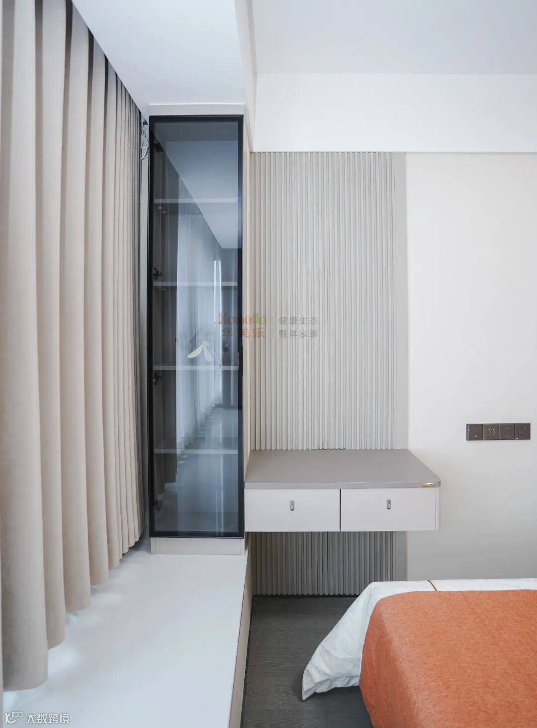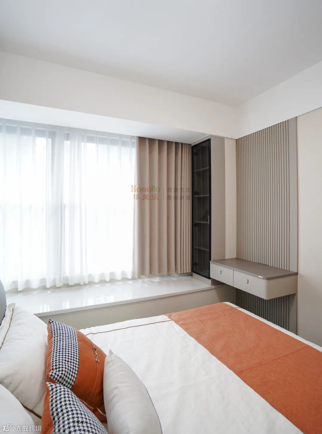 床尾飘窗柜梳妆台:把 “闲置飘窗”,变 “多功能精致角”,很多主卧的飘窗,往往沦为堆放杂物的角落,而床尾飘窗柜梳妆台的出现,让这片空间彻底 “复活”,成为卧室里的 “小清新角落”。