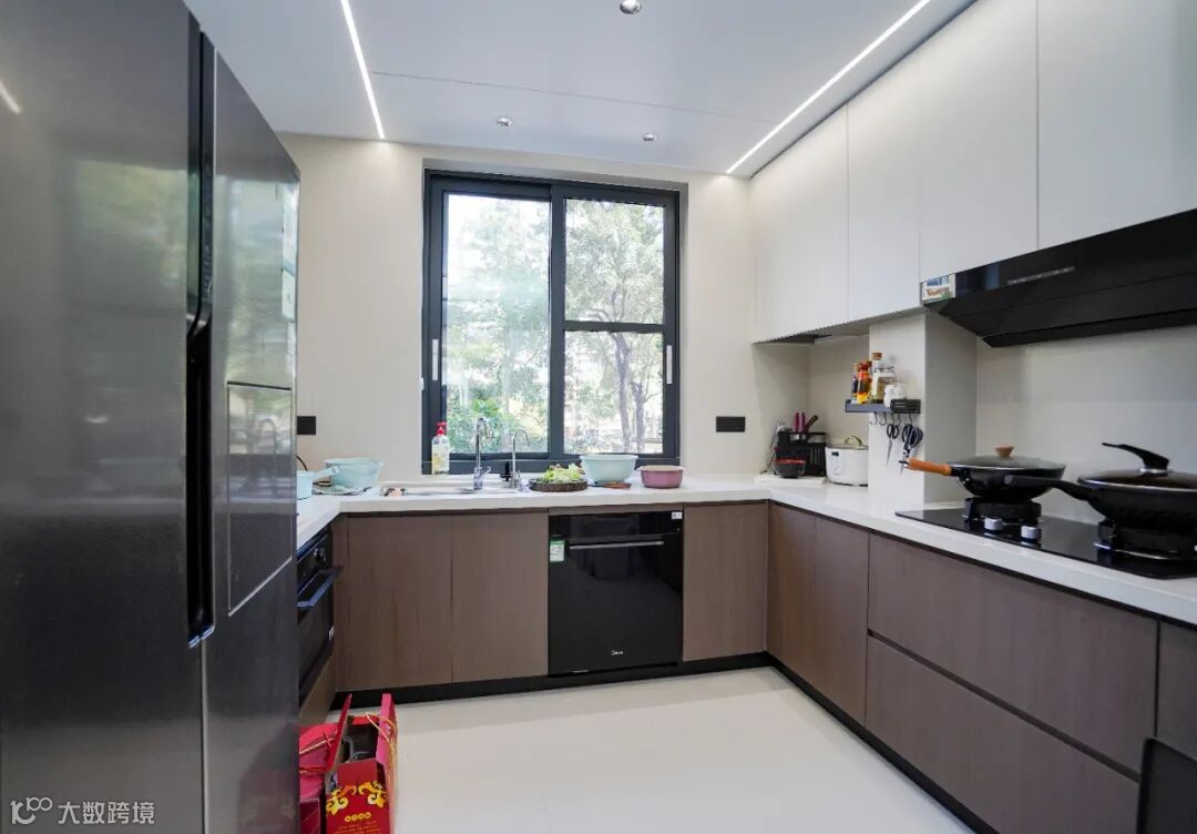 半开放式的厨房设计太赞啦!既保留了与餐厅的互动感,家人做饭时也能和客厅里的人交流,又能在需要时,通过玻璃移门营造相对独立的烹饪空间,阻挡油烟。
